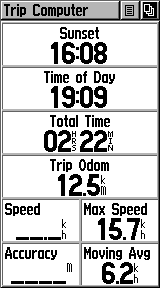 Здесь приведена страница карты с куском путевого журнала (обратите внимание на масштабы) и страница информации о спутниках. Видно, что значение большого разрешения для навигатора трудно переоценить. Страницы показаны так, как они видны на самом деле и в масштабе 1:1. Что ещё? Основная фишка этой модели - встроенная база данных по населённым пунктам земного шара. Поначалу это звучит как то отстранённо от нашей Российской действительности. Ну откуда ему (навигатору) знать наши города и поселки. Поначалу и я так думал. Однако скоро изменил своё мнение. Неоднократно колеся по Архангельской области и периодически попадая в ситуации, когда от дорожных указателей невозможно добиться ничего вразумительного по поводу посёлков и деревень, в которые мне надо попасть, я, не особо надеясь, взял да и задал поиск по имени населенного пункта. Каково же было моё удивление, когда прибор нашел мне требуемую мне деревню с мизерным количеством жителей. И кроме того довольно точно отобразил её в окне навигации. Выяснилось, что я не доехал всего 2 километра. Так что база данных на самом деле довольно большая. Кроме этого у данной модели имеется память ёмкостью 1Мб для загрузки точек пользователя. Я честно скажу, что не представляю себе сколько точек надо заложить, чтобы заполнить всю память, но это наверняка огромная цифра с 4 или даже с 5 знаками. А это, если подумать, уже довольно подробная карта местности. И всё это за цену, которая гораздо меньше eTrex Summit и всех последующих моделей. Кстати, с этой модели начинается применение специального джойстика, позволяющего быстро вызывать многие функции в вводить данные. Далее следует отметить путевой журнал на 2048 точек. Расширенный набор аксессуаров. И поддержку системы WAAS. Система конечно хорошая, но пока не для нас. Хотя кто знает, может через 2-3 года и у нас вдруг появится. Напомню, что эта система помогает навигатору определять местоположение с точностью до 20-50 см. Хотя по мне и 6-10 метров вполне достаточно. При использовании нового дисплея и, как следствие, нового процессора, срок работы от одного комплекта батарей остался большим и составляет 20 часов. Достоинства: конечно же новый дисплей, небольшая стоимость, новая страница "Бортовой компьютер" с множеством вычисляемых данных, встроенная база данных по населённым пунктам мира, наличие джойстика управления и ввода. Недостатки: маловато путевых точек. Выводы: замечательный прибор, стоит своих денег, рекомендую активным туристам, водителям, велотуристам и т.п. Однако для полного использования уже не обойтись без использования специальных программ для создания и загрузки данных из компьютера в навигатор и обратно.